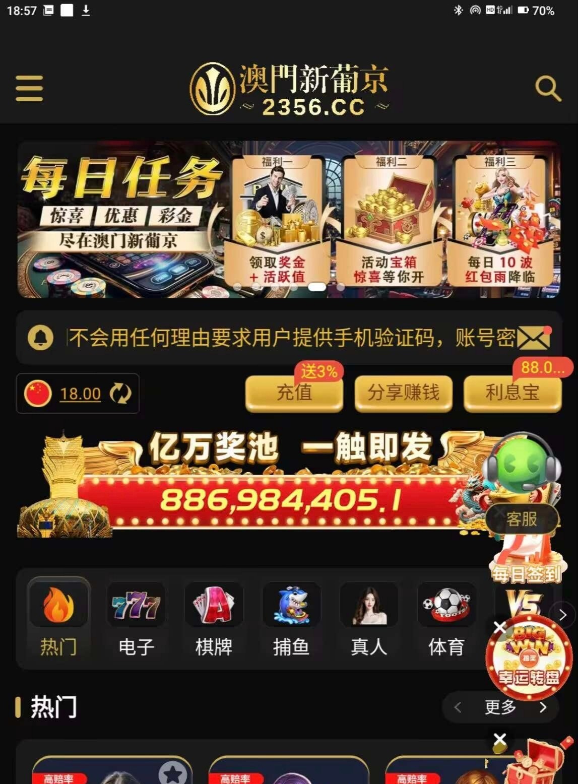 【葡京2356】 特邀自助彩金
