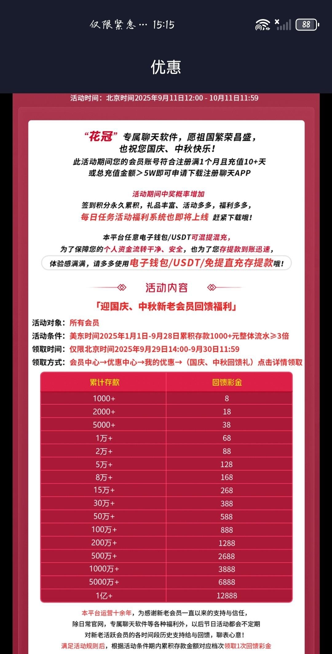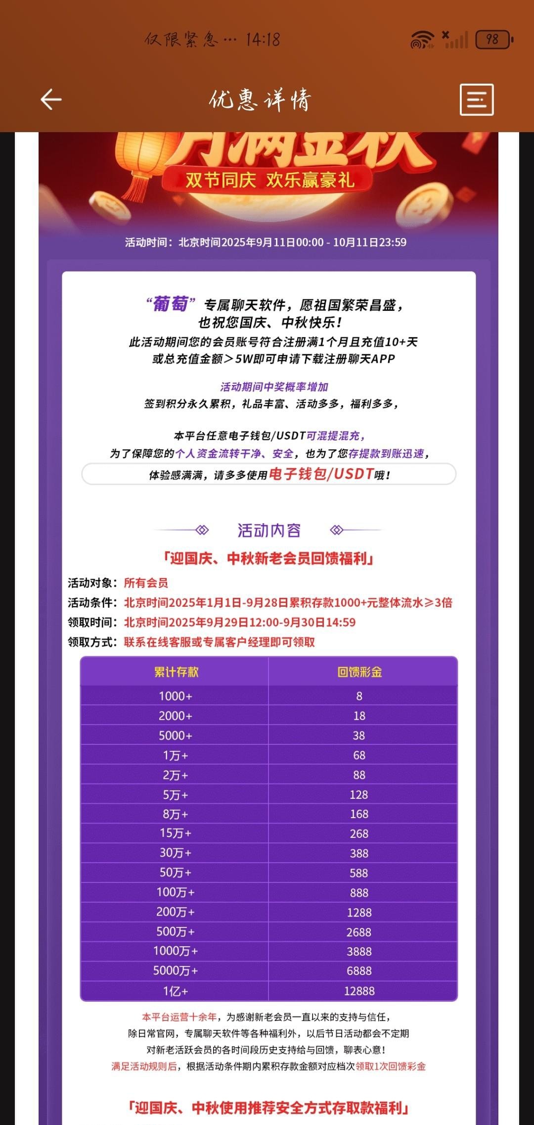 今年充值过去国庆回馈这一系列台子都有