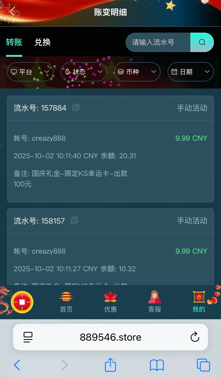 幻影发了9.99国庆礼金,只能玩幸运之卡,有号的去看看