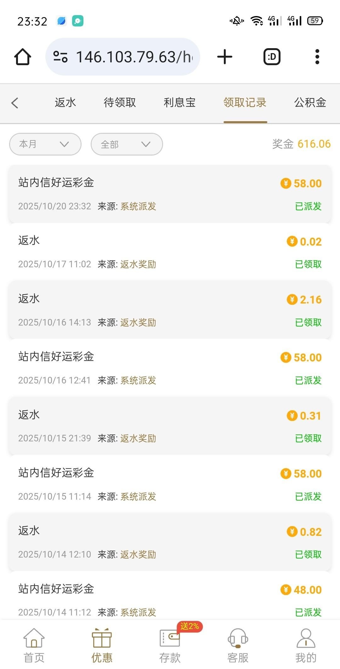 站内信又来了,这个陆续送了6-7天,不是58就是48-38 地址 777444.com