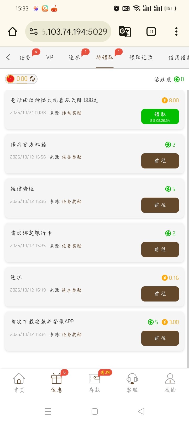 刚打来电话,送了8块回访彩金