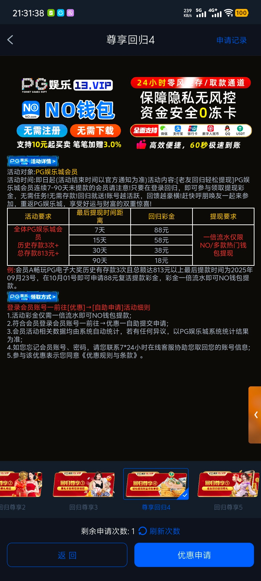 有账号历史充值过符合条件的去优惠里面自助申请