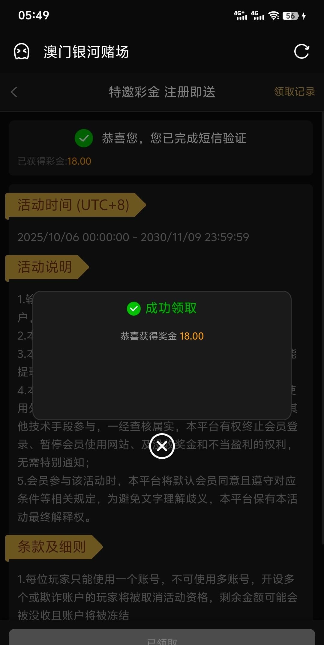 【银河595】特邀自助彩金